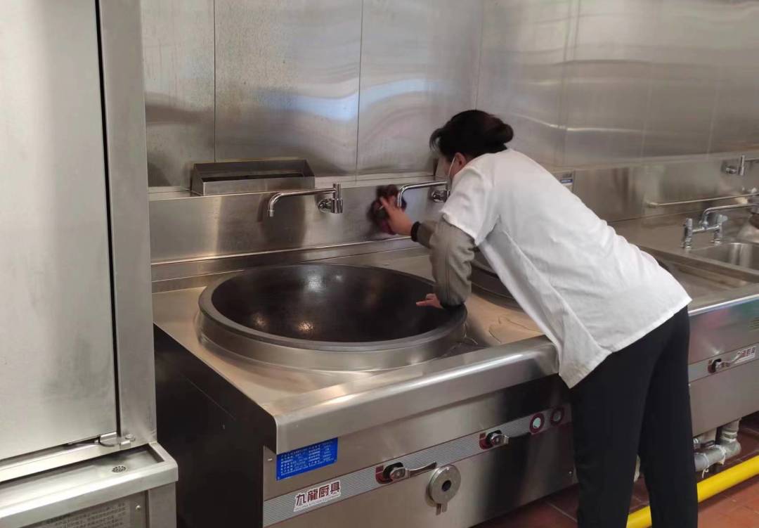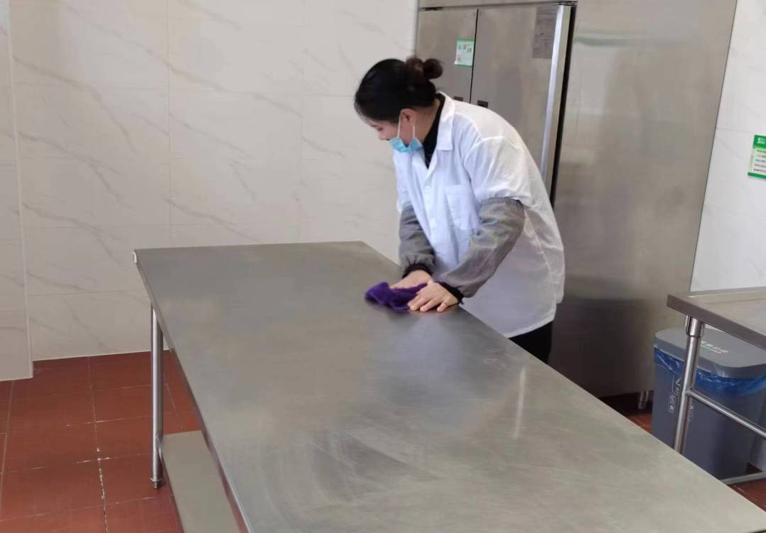食堂工作人员全力投入其中,把食堂用品进行清洗,对食堂每一个地方,每一处角落都进行全面的清理,保障孩子们的用餐安全。
