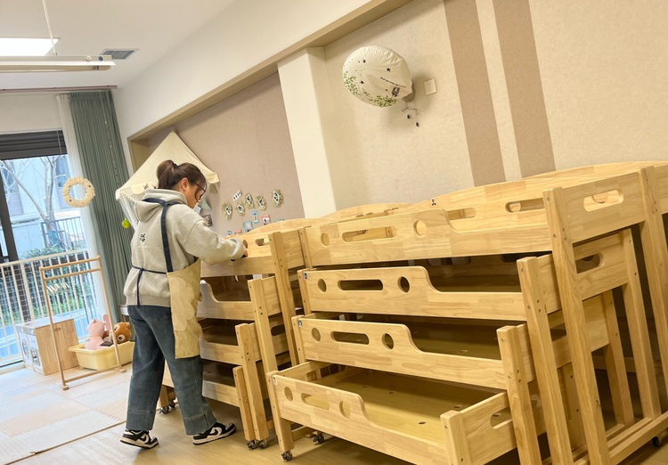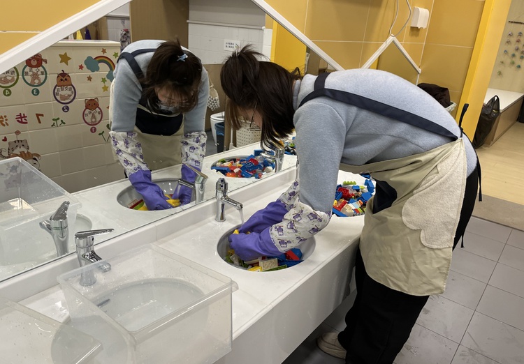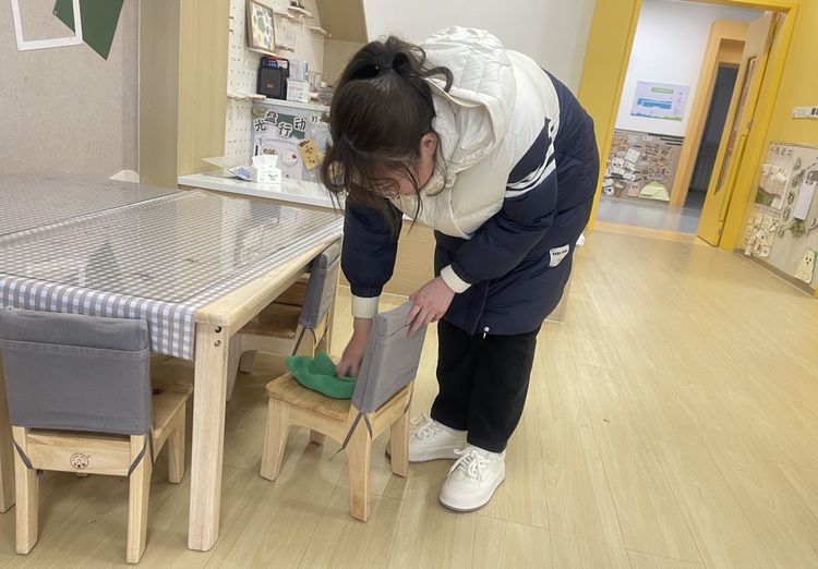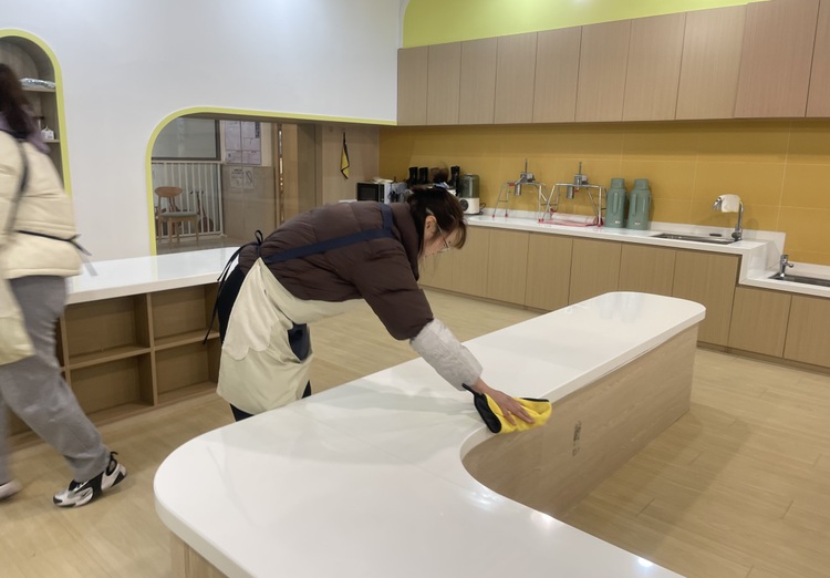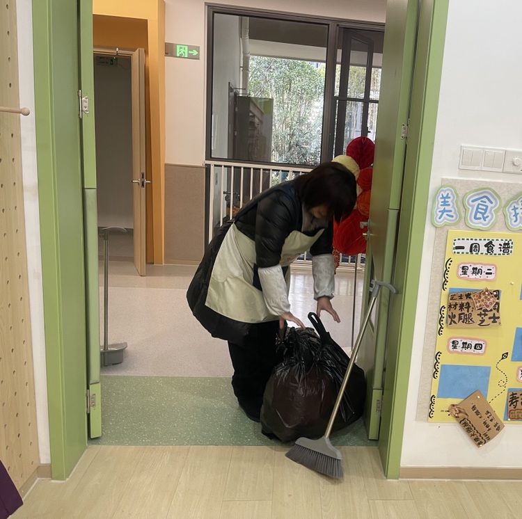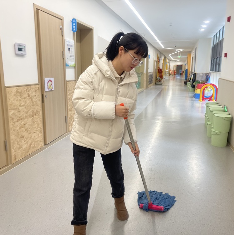 老师们早早地来到幼儿园,从“心”开始,从“细”着手,打扫教室、卫生间、走廊、功能室、图书角等公共学习游玩区域。