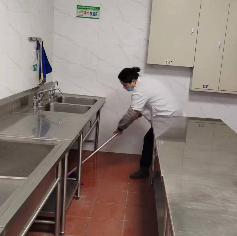 各个角落进行“地毯式”卫生的清扫、消毒,卫生间、地面、墙壁、门把手等卫生死角打扫的干干净净,做到清洁、细致、到位、无死角。