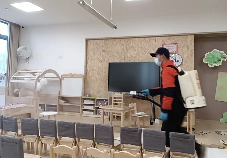 我园环境消杀一直坚持“全覆盖、无死角、清底子、彻整治”的原则,严格按照卫生消毒管理标准规范操作,对各班活动室、走廊楼梯、户外排水道等进行消杀,做到不留死角,筑牢幼儿园卫生防护墙。