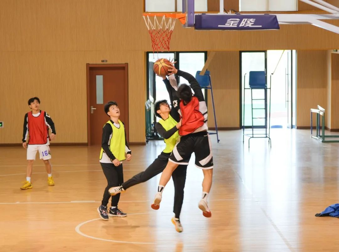 体育课上,两校学生聚在一起参加训练,交流运动心得,并开展了一场酣畅淋漓的友谊篮球赛。现场,时不时传来阵阵欢呼声。