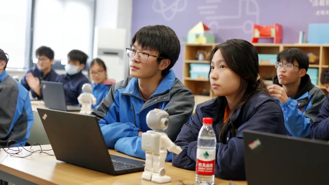 在学校的余杭区人工智能教育基地里,香港学生与科创班同学共同合作,操控无人机顺利完成绕杆飞行、体验悟空机器人的互动乐趣,亲手完成首件激光雕刻创意作品……体验过充满科技感、趣味感的科创课堂后,香港学生们直呼“太有意思了!”“不想走,想再玩会!”