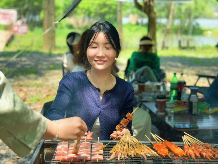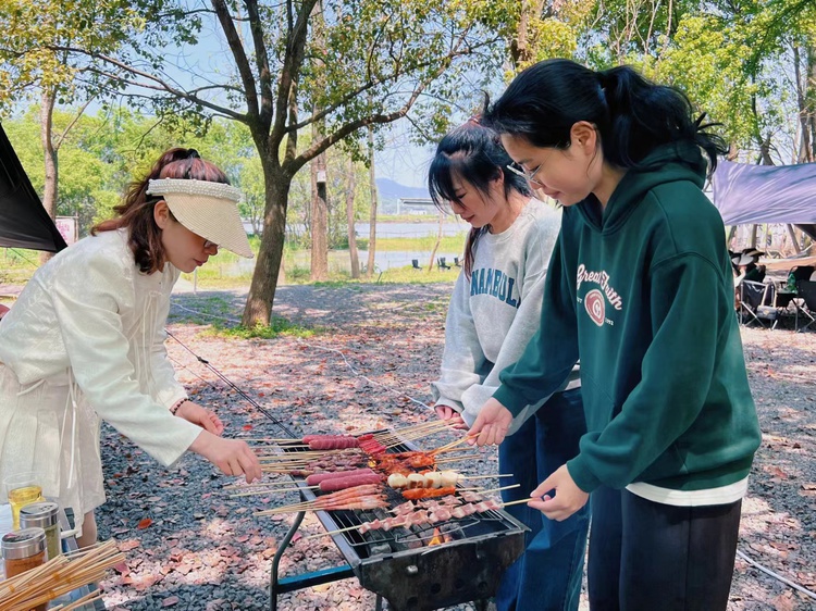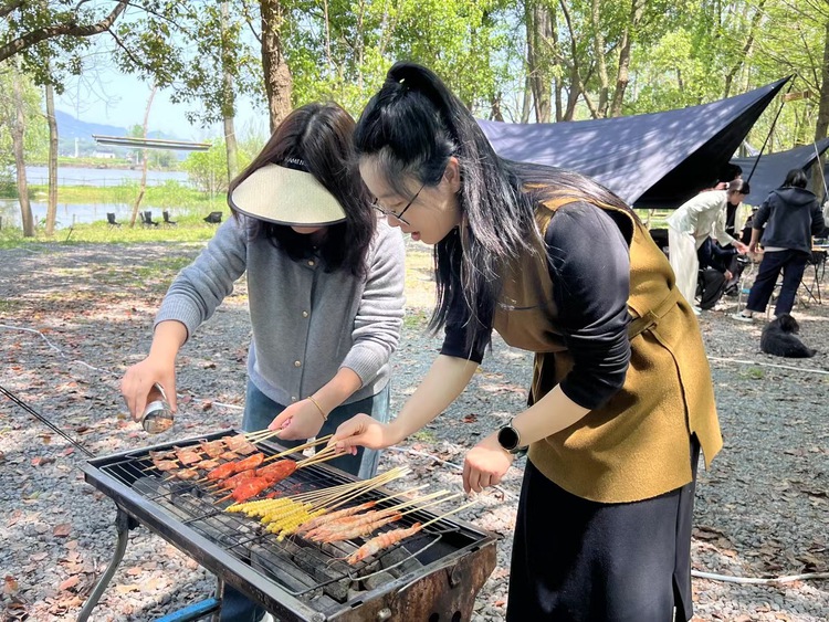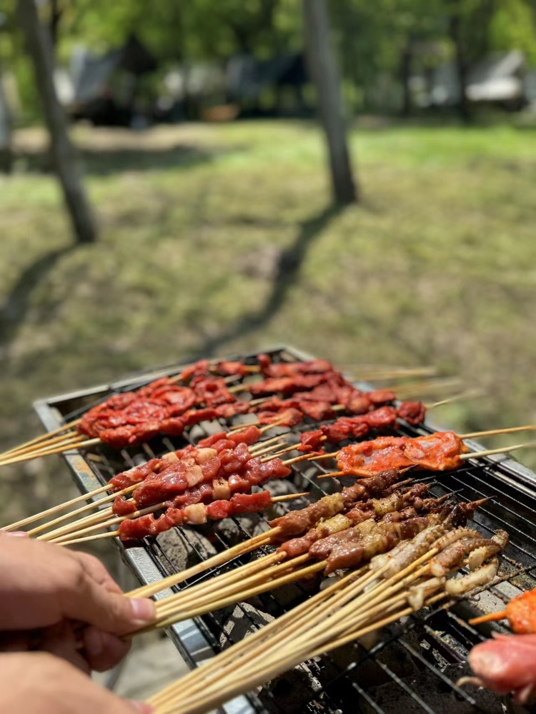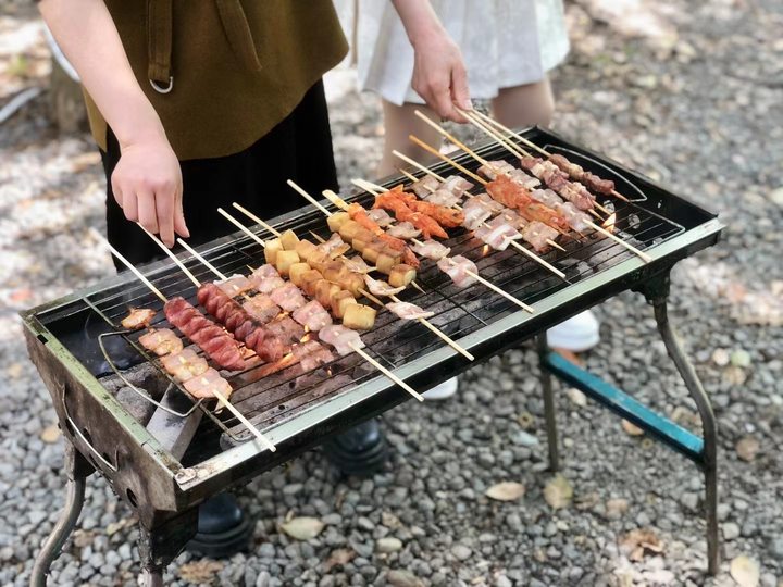 烧烤架里火红的炭火,就像是我们迫切想要品尝那份美味的心情。看,在老师们的精心烤制下,美食就熟透了。