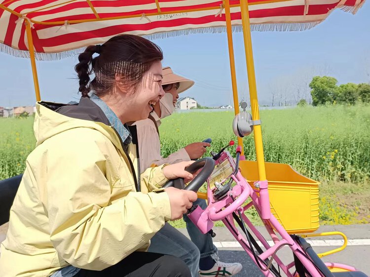 在绿意盎然的环境下,老师们也卸下了重担,融入到了大自然中,放松的心情绽放在脸上,春游的意义就在于心在一起,静在这里。路上大家嬉笑不停,这就是我们出行的目的“幸福我和你”。