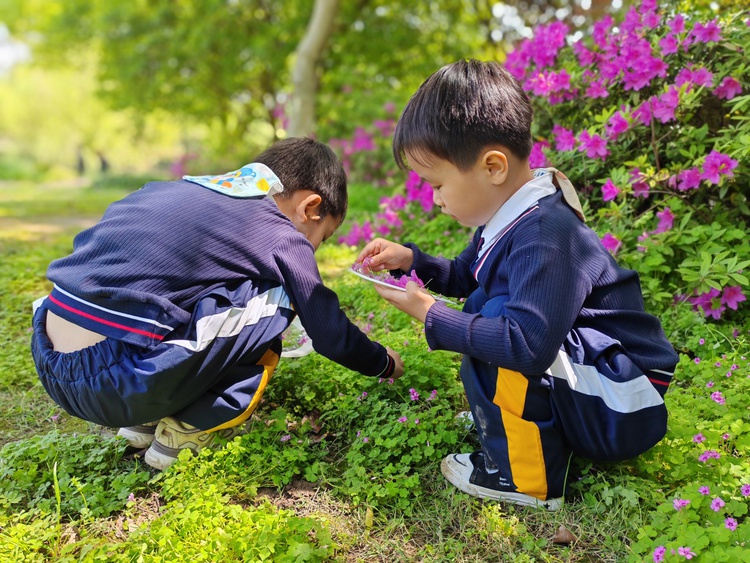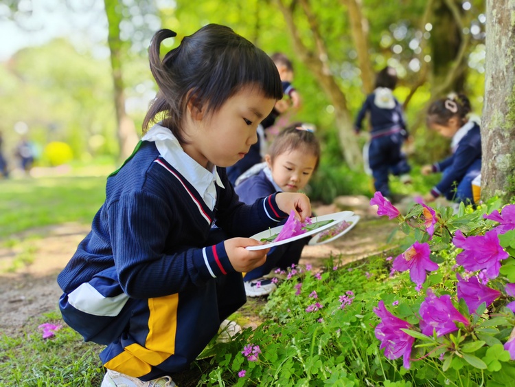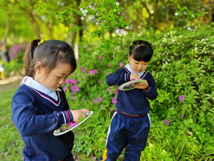 春色匆匆,孩子们不舍春日凋零,有心把美妙春色珍藏起来。