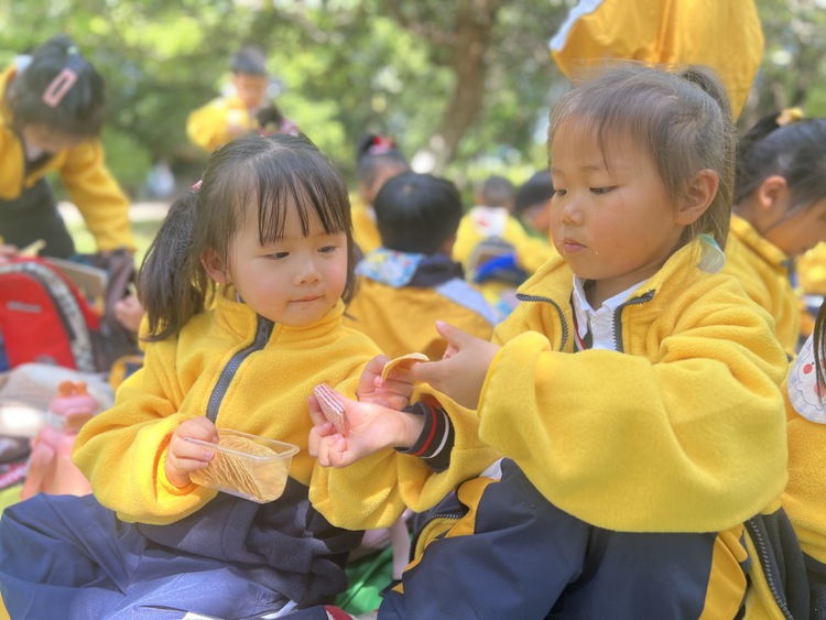 在观赏春景和寻找消防元素后,迎来了期待已久的野餐时间!坐在五颜六色的彩虹垫上,掏出琳琅满目的零食,在最“美味”的味道里品尝“分享”的味道!