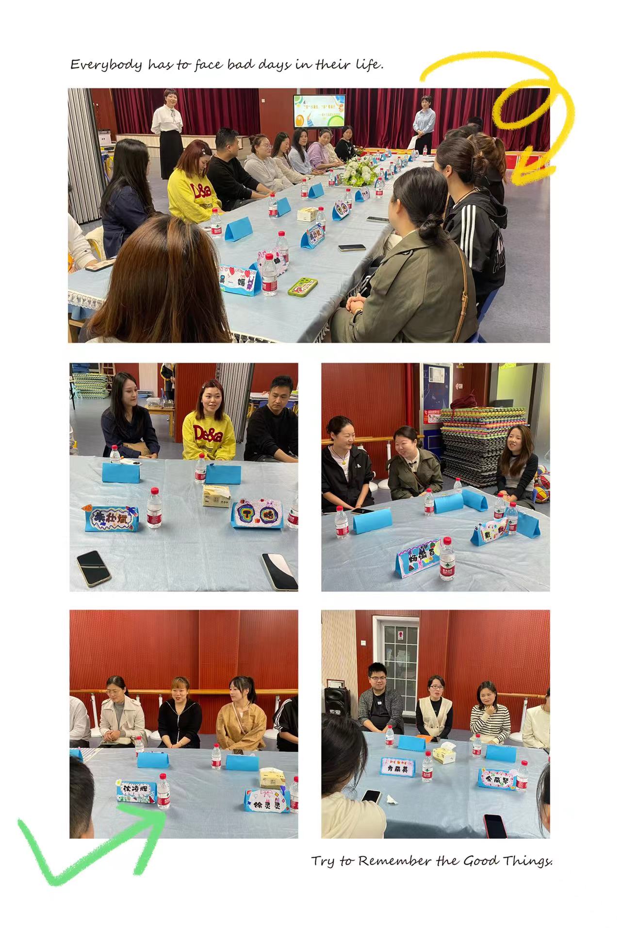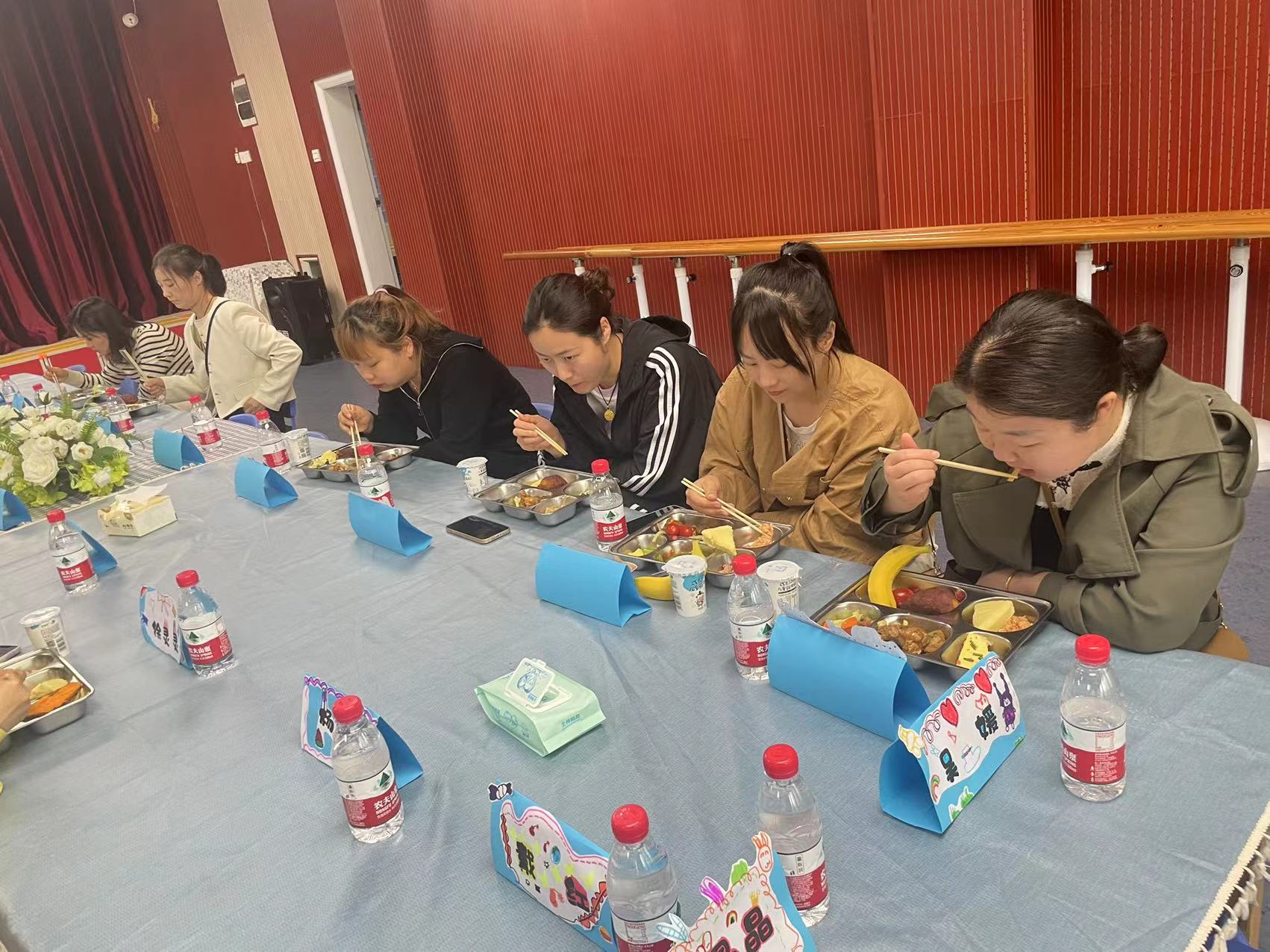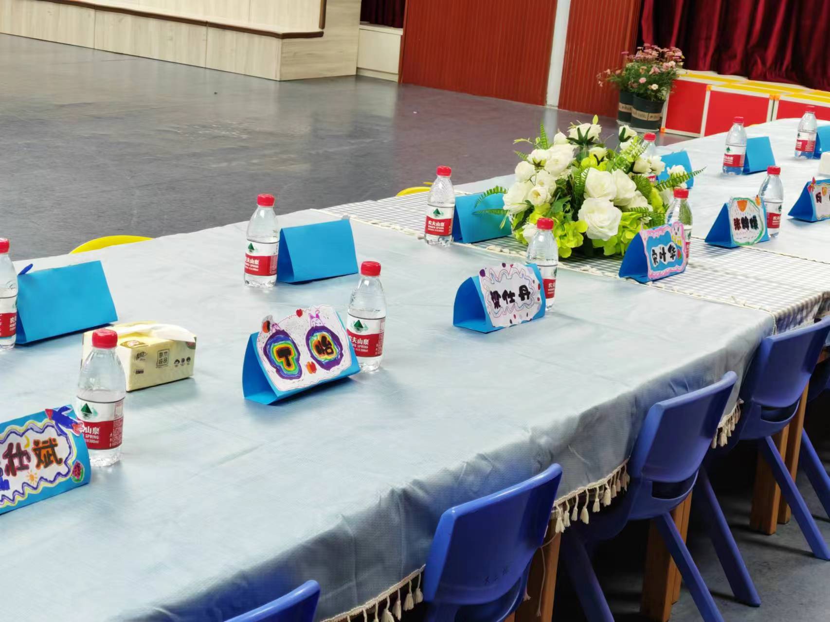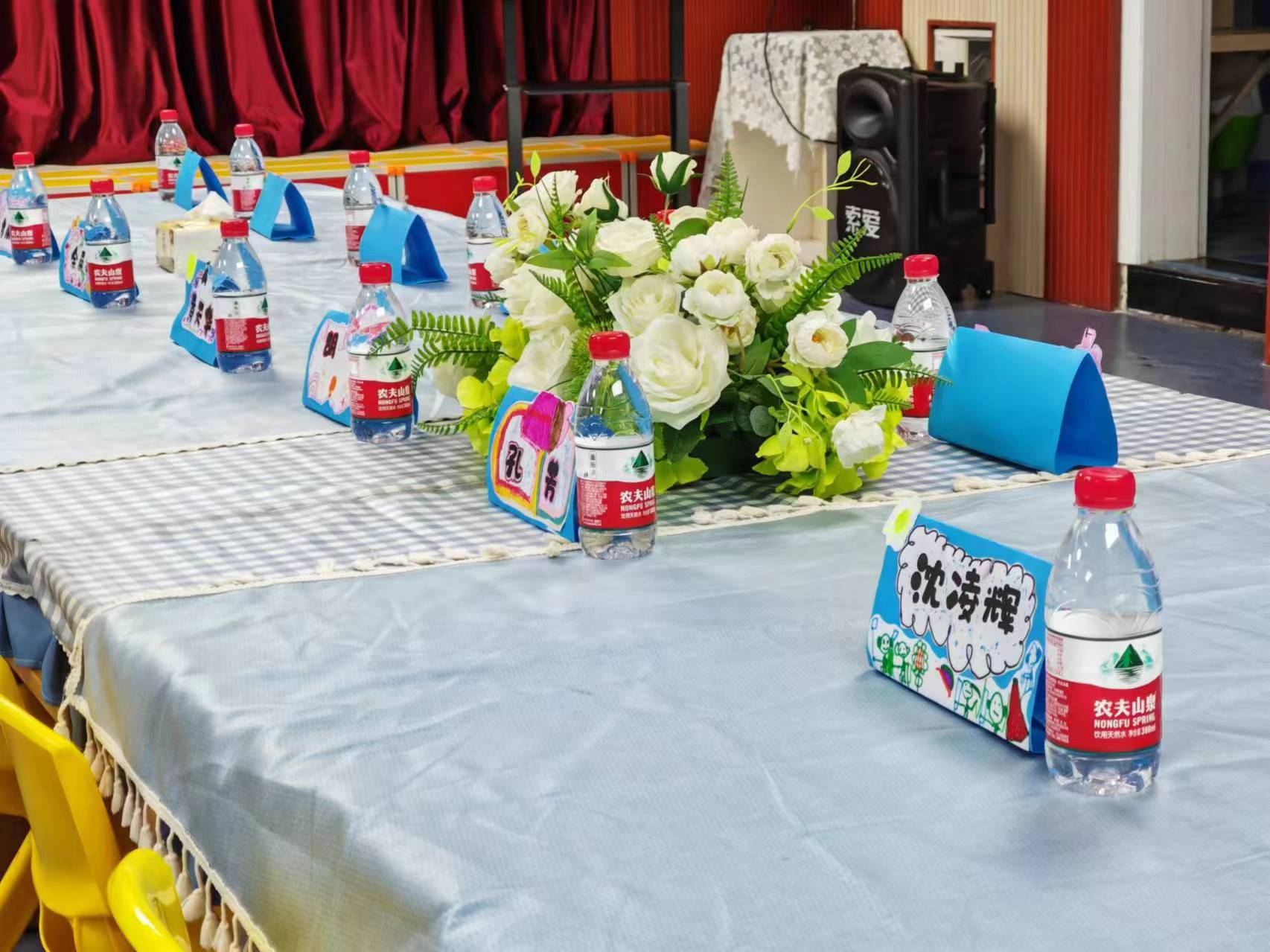 为一场爱的邂逅,老师、小朋友们一起制作邀请函、台签、布置会场。