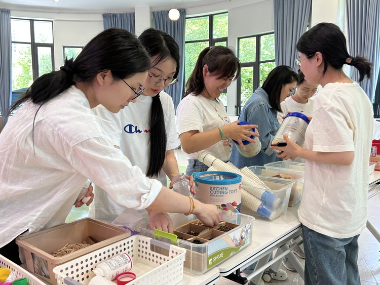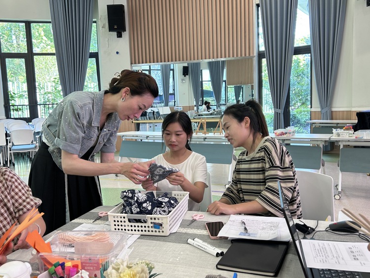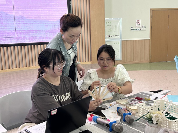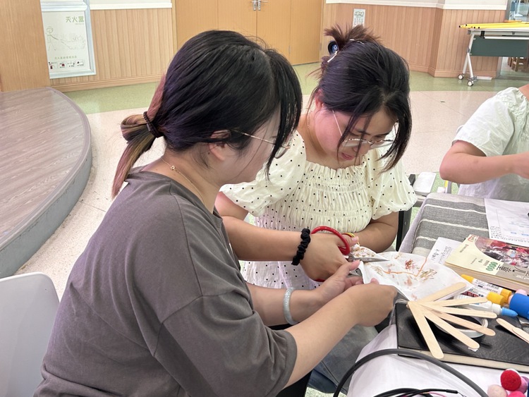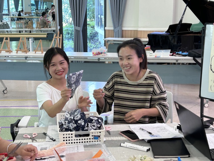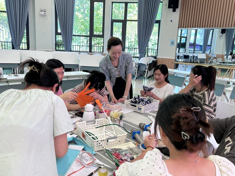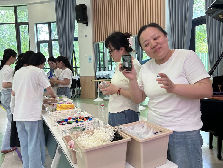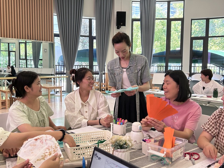根据线上研讨调查卷上老师们提出的完善建议,老师们以班级为单位,选择所需材料进行制作,初探制扇。