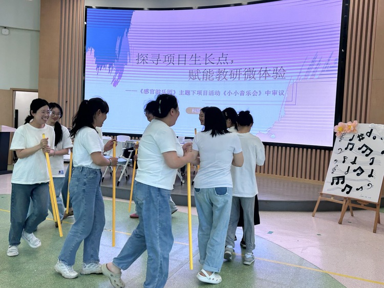 活动开始前,结合本次教研活动主题《小小音乐会》,科凯小班教研组进行了音乐节奏方面的小游戏,从而提高团队凝聚力,使组员们在轻松愉悦的氛围中进行教研活动。