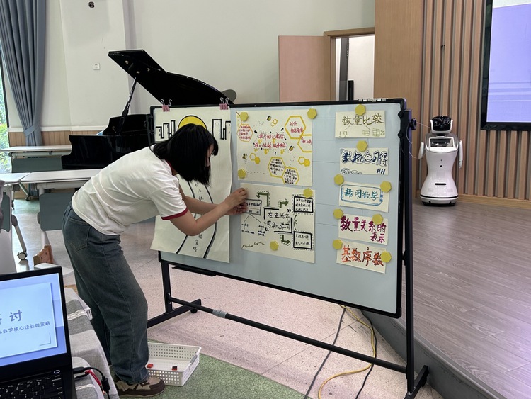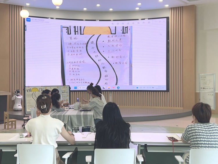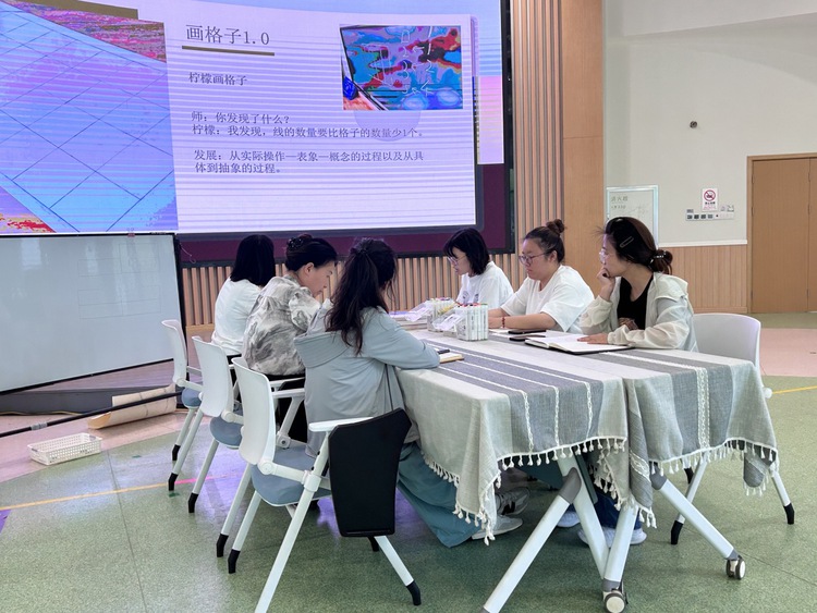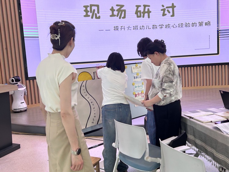 在分享结束之后,大班组教师就提升幼儿的数学核心经验有哪些策略,分两组进行了讨论。