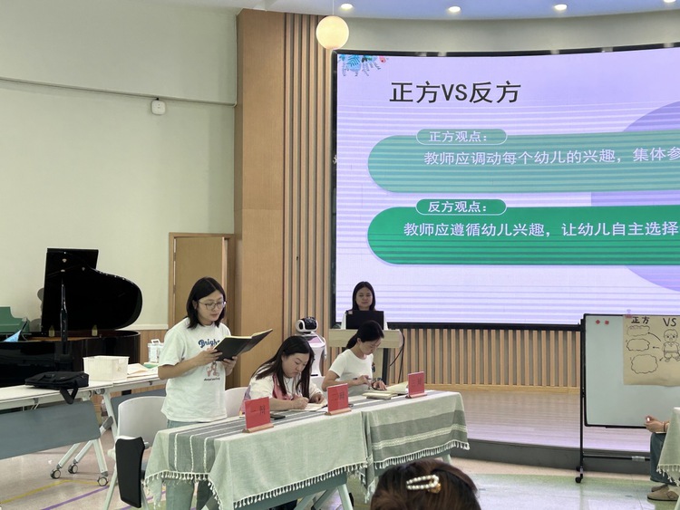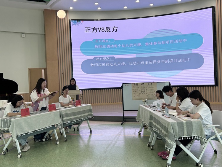 辩论过程中,正方认为关于项目活动中幼儿的参与形式,集体形式会更好,因为集体教学活动能让所有幼儿在公平、有效的前提下参与,并保证每位幼儿的教育效果。