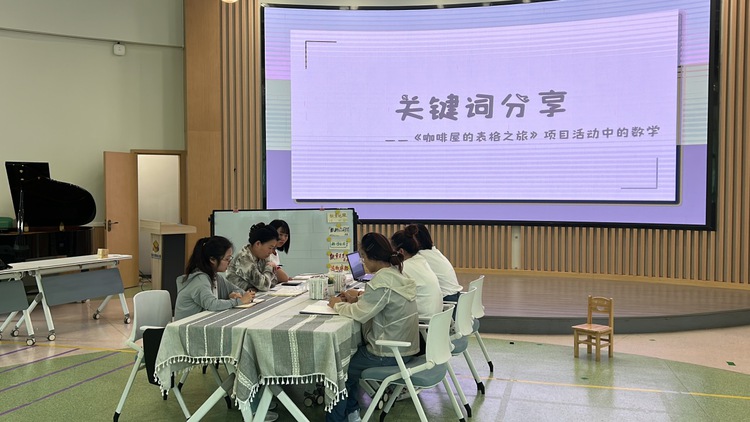 大班教研组链接大二班的项目活动《咖啡屋的表格之旅》,根据大班的年龄特点,分析项目活动中的数学元素,展开教研。