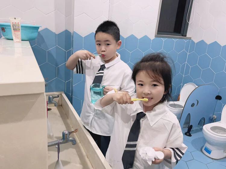 和同伴一起洗漱,