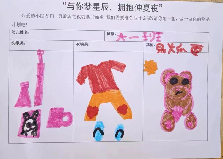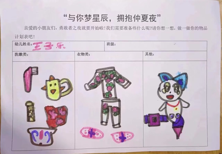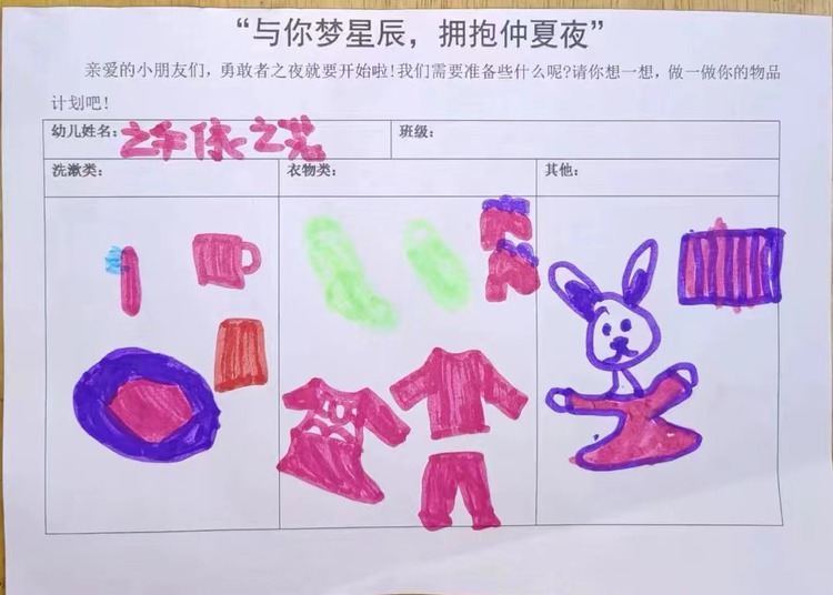 在幼儿园留宿我们要带些什么呢?洗漱用品、拖鞋、睡衣等,这是我们第一次体验星光月亮相伴的幼儿园,也是第一次离开爸爸妈妈和小朋友们一起睡觉,多么美好的回忆呀!