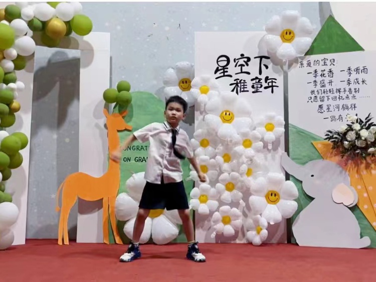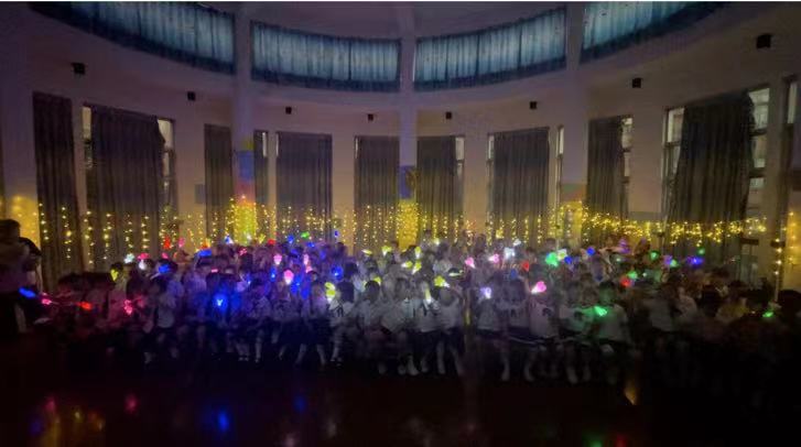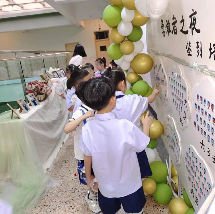 缤纷的气球和亮闪闪的灯光将氛围感拉满。踏上勇士之路,聆听着美妙的歌声,踏着时间的旋律,孩子在签名墙上按下了暂停键,时间定格在这美好的夜晚。在这个夜晚我们像萤火虫一样自带光芒。