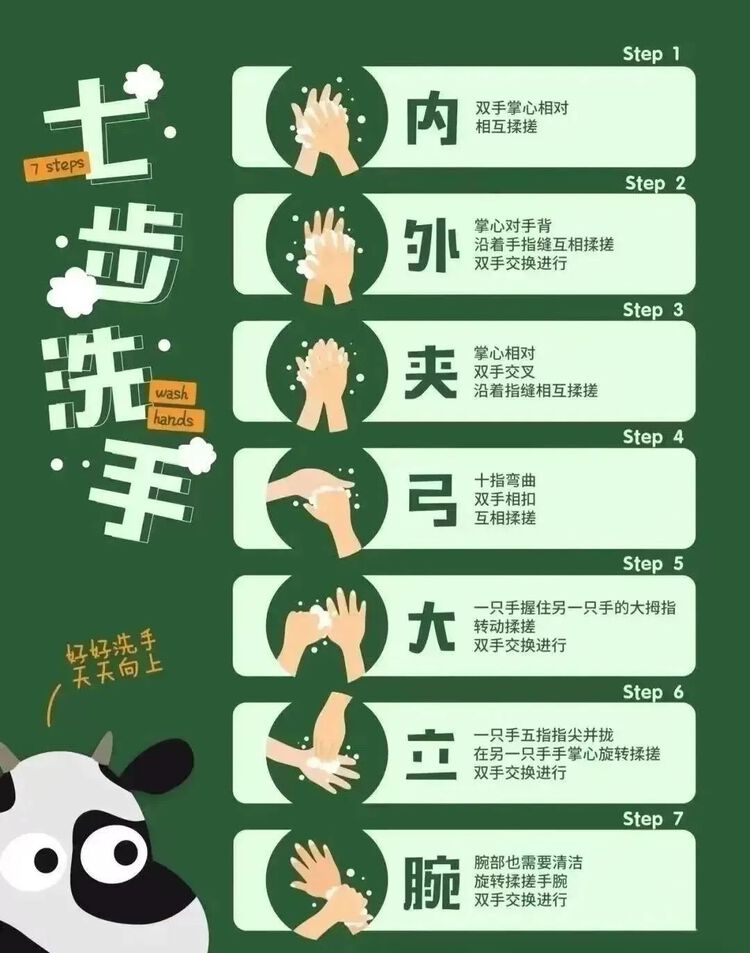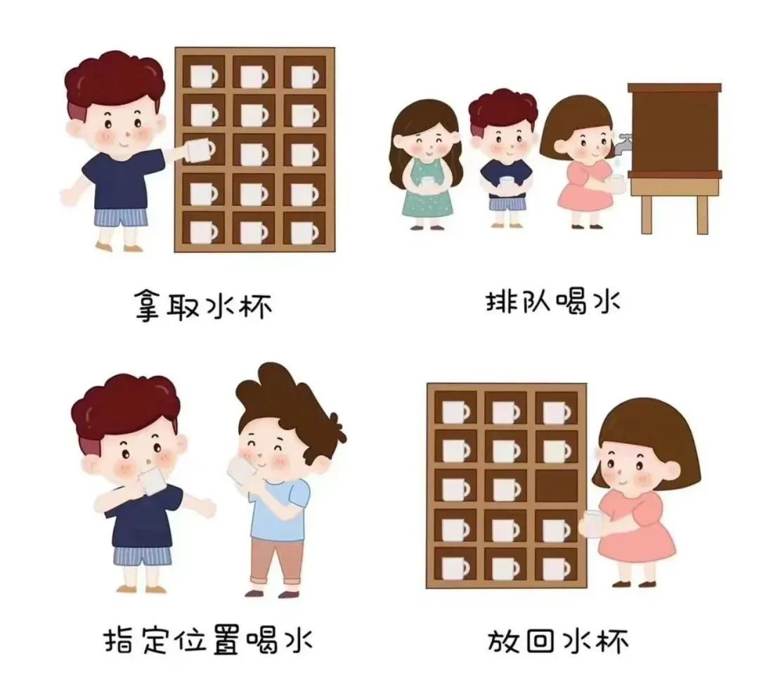 进餐儿歌 一手扶小碗,一手拿小勺; 小勺盛米饭,小嘴悄悄尝; 宝宝自己吃,越吃越香甜。 绘本推荐 《吃饭不挑食》能引发孩子主动进餐的欲望,培养幼儿良好的饮食习惯。 2 快乐喝水 多喝水,身体好,喝水避免孩子上火,快快拿起小水杯,一起来喝水吧! 绘本推荐 《少喝饮料,多喝水》等绘本引导孩子了解喝水的重要性,从喜欢喝水逐渐过渡到养成爱喝水的习惯。 3 正确洗手 孩子喜欢玩水,家长可以利用这一点,在游戏中学会“七步洗手法”,帮助孩子养成勤洗手的好习惯,防止细菌的侵入。 绘本推荐 《一点儿也不脏呀》绘本引导孩子们了解不洗手的危害及洗手的重要性,逐渐养成良好的卫生习惯。 4 独立穿脱衣物