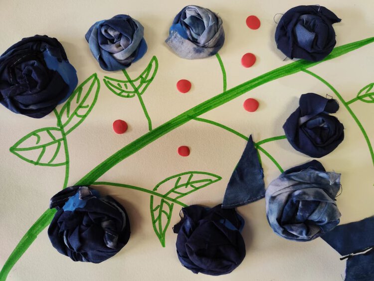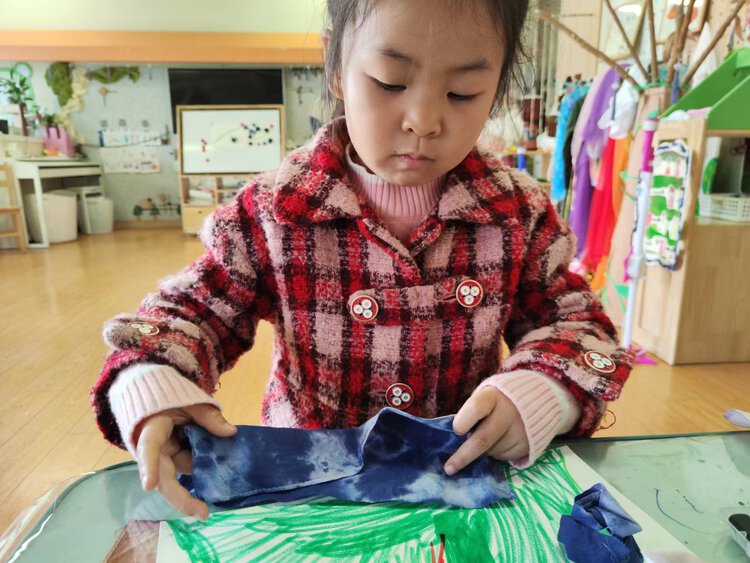 扎染过的小方巾可以进行各种各样的创作,这次又会带来怎样的惊喜创作呢?原来是一朵朵漂亮的花啊!