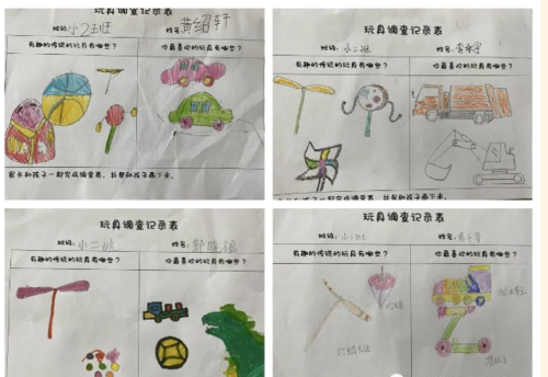 小朋友回家做个小小调查员,和爸爸妈妈一起,看看有趣的传统玩具有哪些?自己最喜欢的玩具有哪些?把它们画下来。