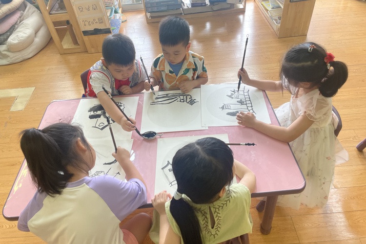《3至6岁儿童学习与发展指南》提出,应创造条件让幼儿接触多种的艺术形式和作品。为了让幼儿感受水墨画的意境美,构图美和趣味性,从而对水墨画产生浓厚的兴趣,为此,大二班的小朋友们一起开展了《水墨江南》的水墨画美术活动。