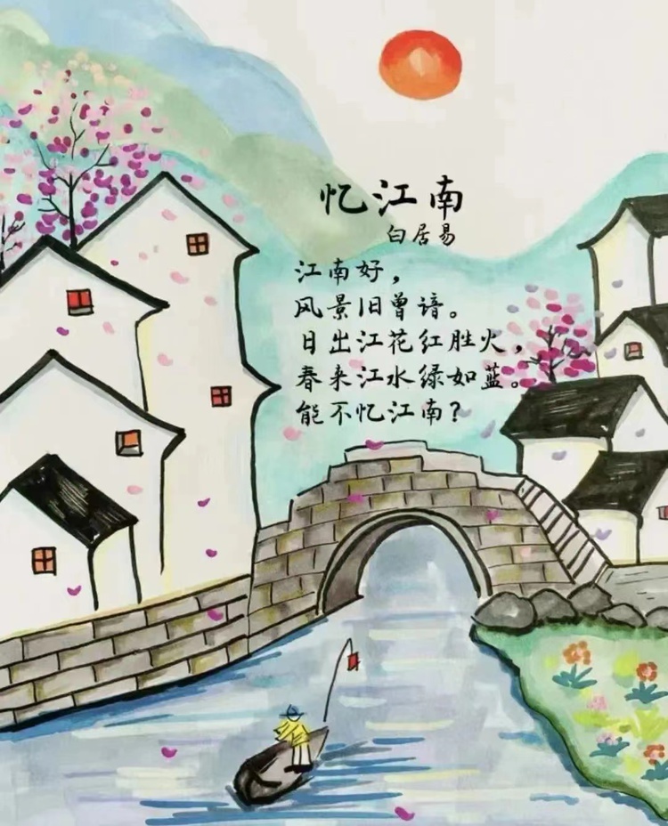 小朋友们奇思妙想,创意无限,纷纷描绘出他们心中的江南水乡。接下来,让我们一起欣赏图片吧!
