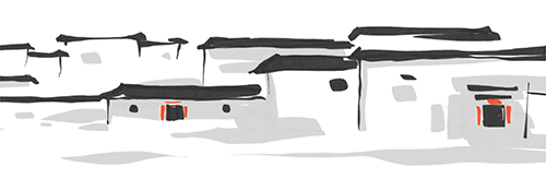 浓墨和淡墨的交替,错落有致的房屋跃然纸上。