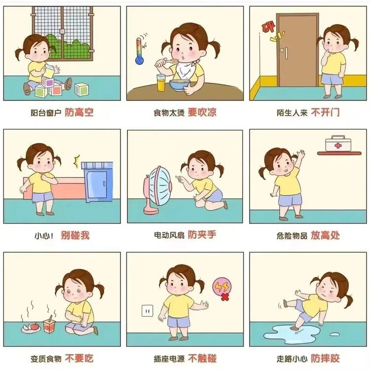 5.不玩尖锐或易碎的物品,以防割伤划伤戳伤。