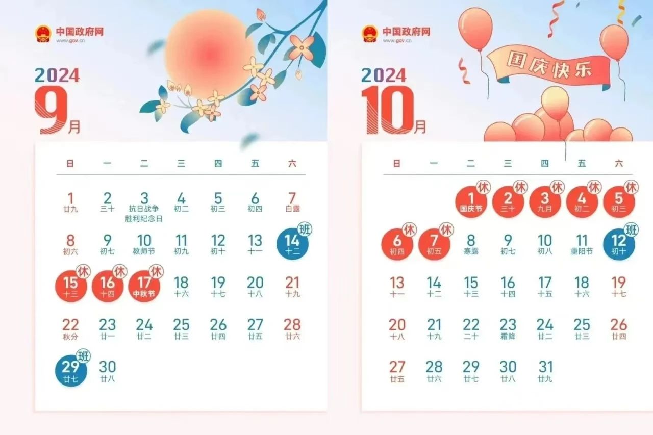 您好!金秋十月,丹桂飘香。国庆假期将至,为了让孩子们度过充实平安的假期,现根据国务院关于节假日放假的规定,将2024国庆节放假安排及注意事项通知如下: