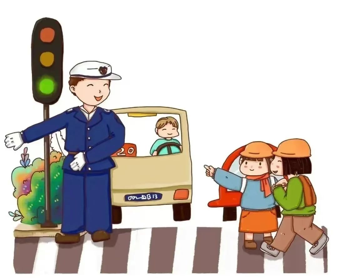 2.过马路不闯红灯,要左右看,走人行横道、过街天桥和地下通道。