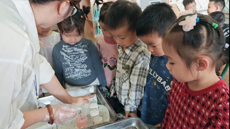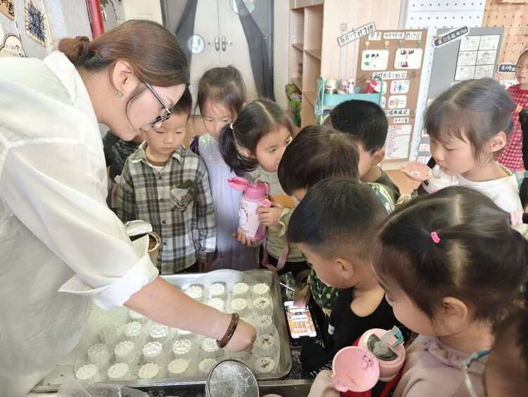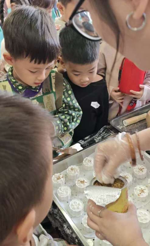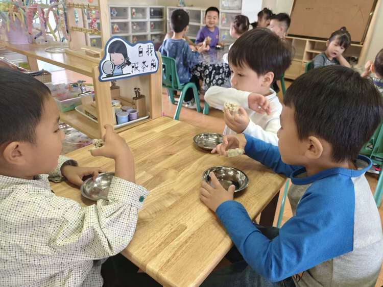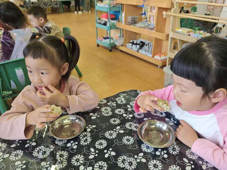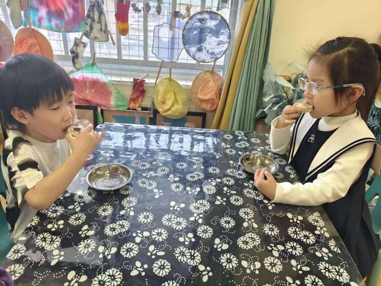 终于可以品尝美味的重阳糕啦!啊呜一口咬下去,甜甜的蜂蜜掺杂在糯糯的糕点中,真的太好吃了!孩子们兴高采烈地品尝着美味,分享着快乐。