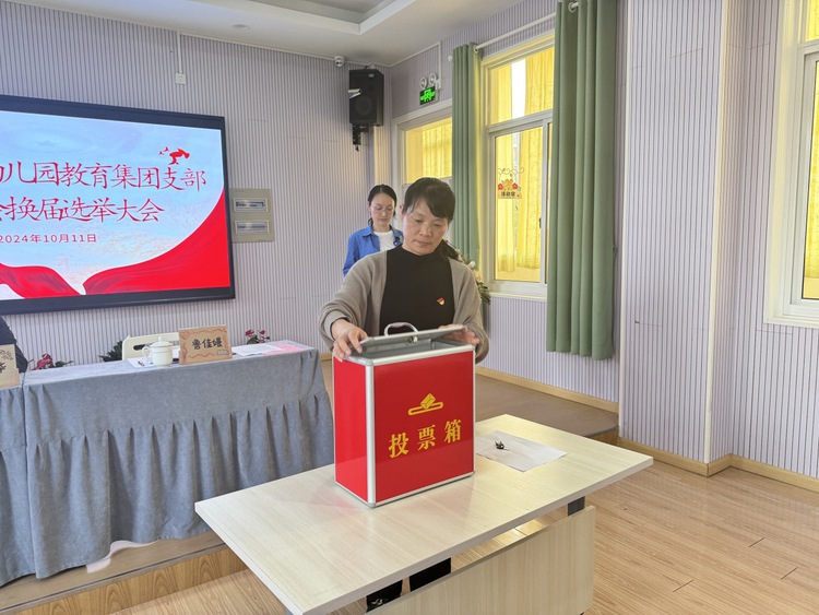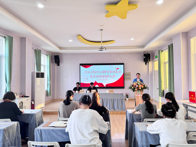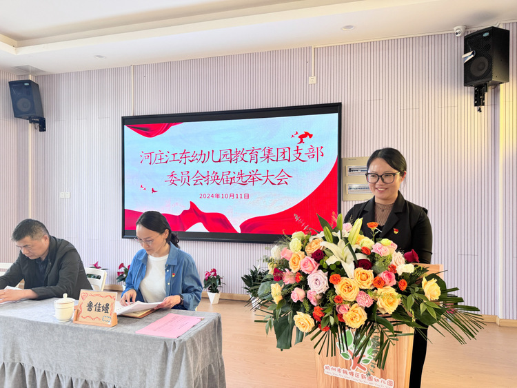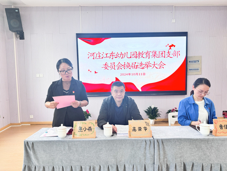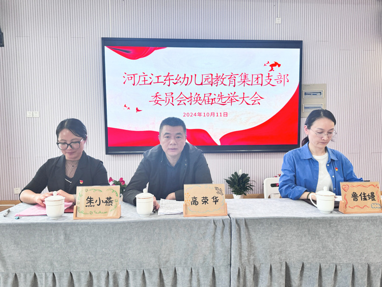 为进一步加强基层党组织建设,充分发挥党支部的政治核心作用,按照上级党组织的安排部署,依照《中国共产党章程》《中国共产党基层组织选举工作条例》,中共杭州市钱塘区江东幼儿园教育集团党支部于2024年10月11日下午举行换届选举大会。杭州市钱塘区教育局党建办高荣华同志莅临本次会议,鲁佳嫚同志主持本次会议。