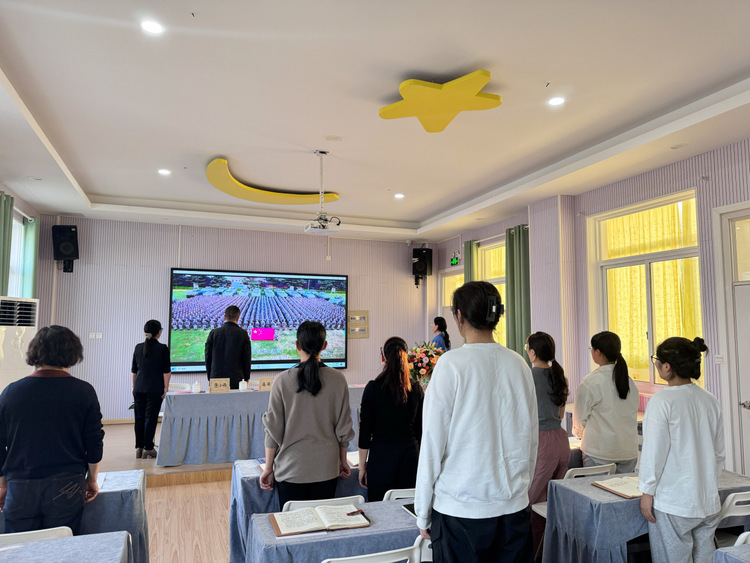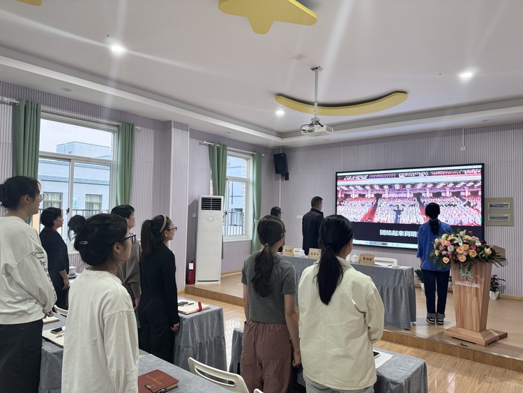会议在庄严的《中华人民共和国国歌》声中拉开序幕,全体参会人员肃立、齐唱国歌。