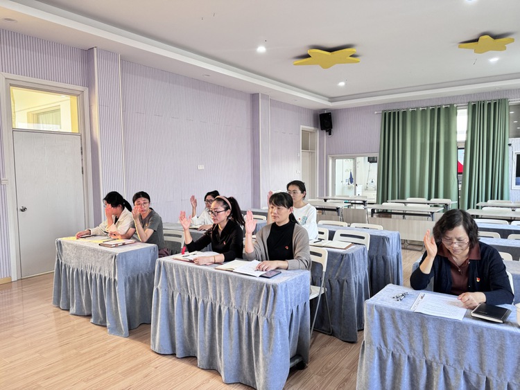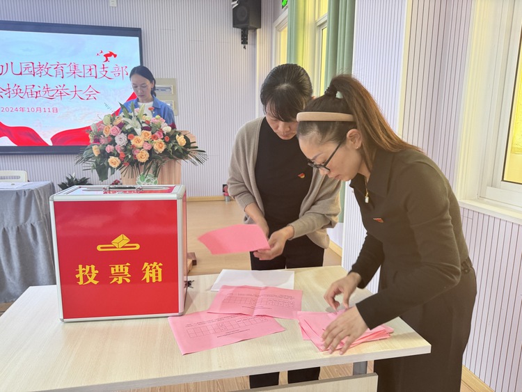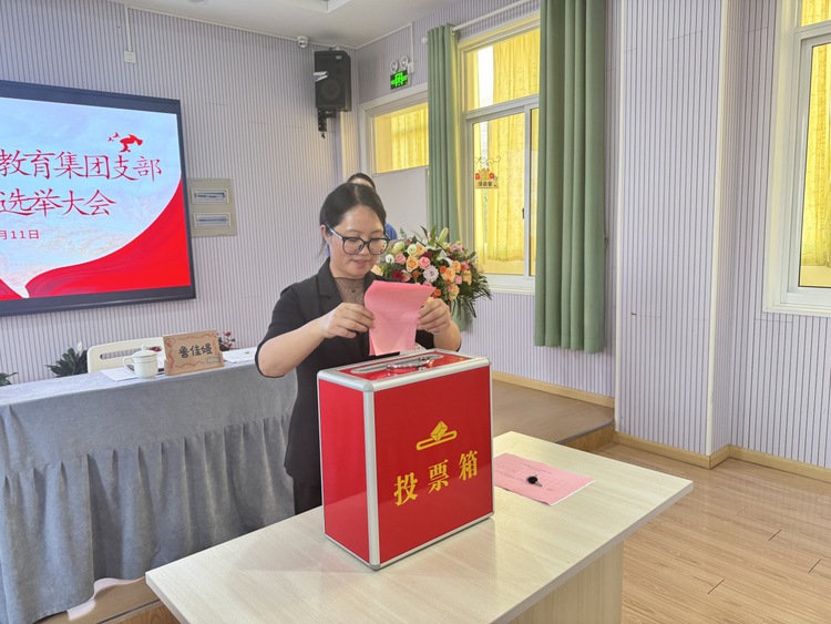 最后,中共杭州市钱塘区江东幼儿园教育集团党支部委员会换届选举大会在《国际歌》中庄严闭幕。