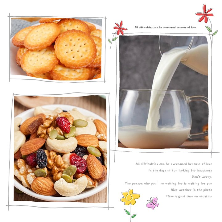 早点:坚果、鲜奶、花样饼干午餐:什锦焖饭、毛毛菜肉圆汤