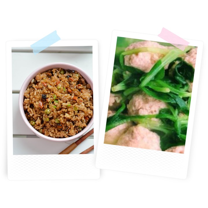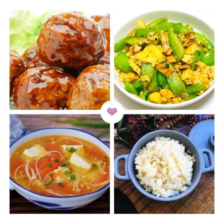 早点:坚果、鲜奶、花样饼干午餐:红烧狮子球、丝瓜炒蛋、金针菇豆腐汤、双米饭