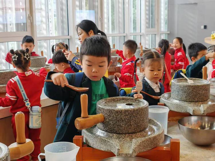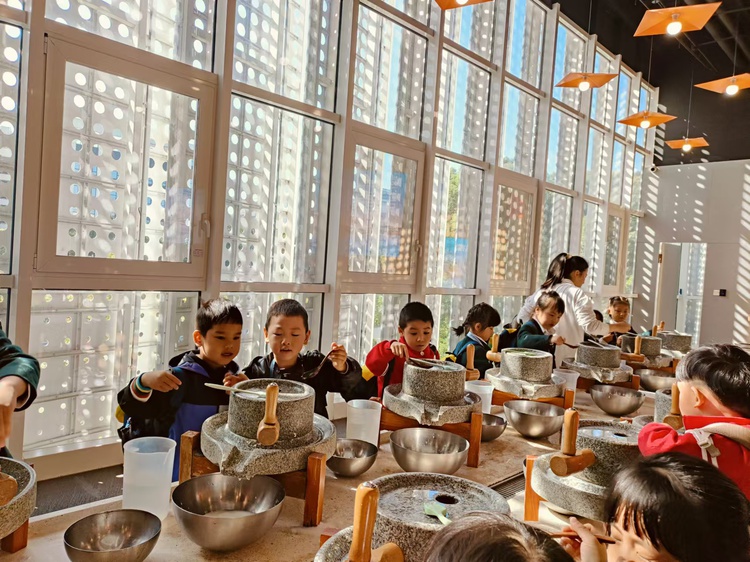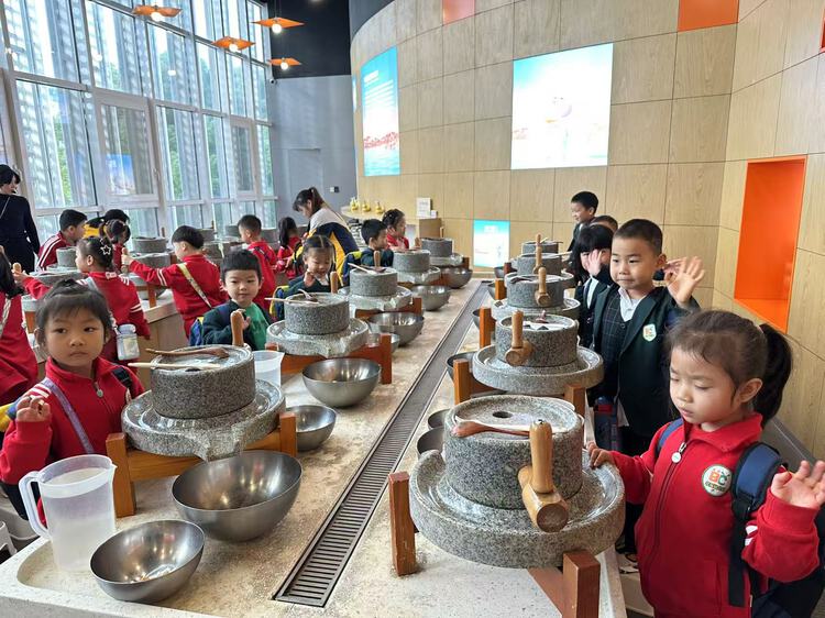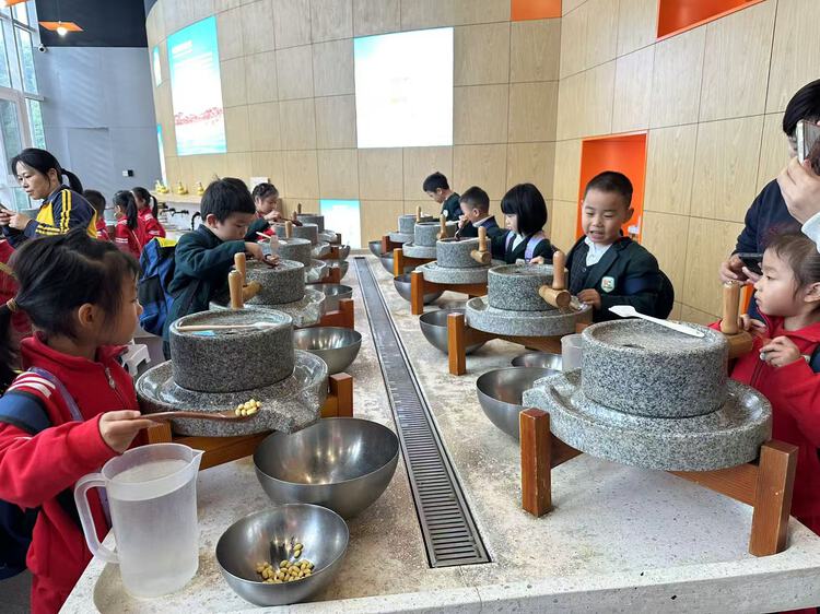 体验:传承非遗瑰宝——古法豆浆磨制技术;用一把豆子、一瓢水,反复研磨、熬煮,制作出香浓可口的美味豆浆,学习古法制浆的手法,传承非遗美食经典。体验劳作乐趣,加深对中华传统饮食文化的认知。