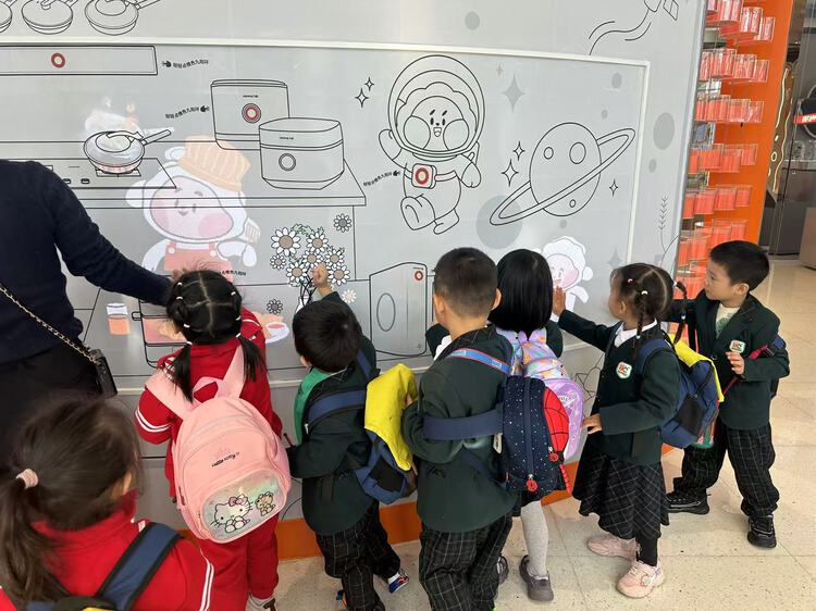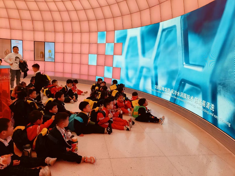 在专业讲解员的带领下,孩子们参观了九阳产品展示区。从智能豆浆机到多功能料理机,每一件产品都让孩子们大开眼界。他们好奇地询问、认真地聆听,还不时发出阵阵惊叹。