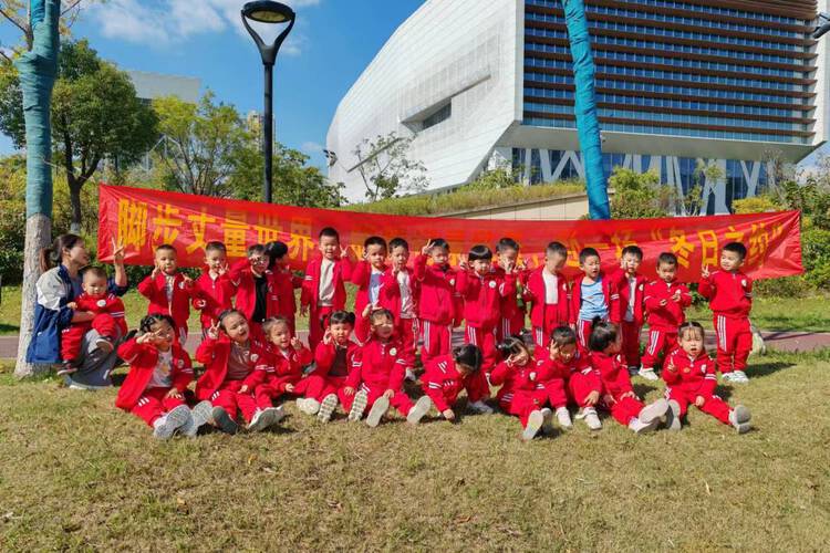 相比大班和中班的孩子们,小班的小宝贝们则选择了在户外草坪上度过这个难忘的秋日时光。