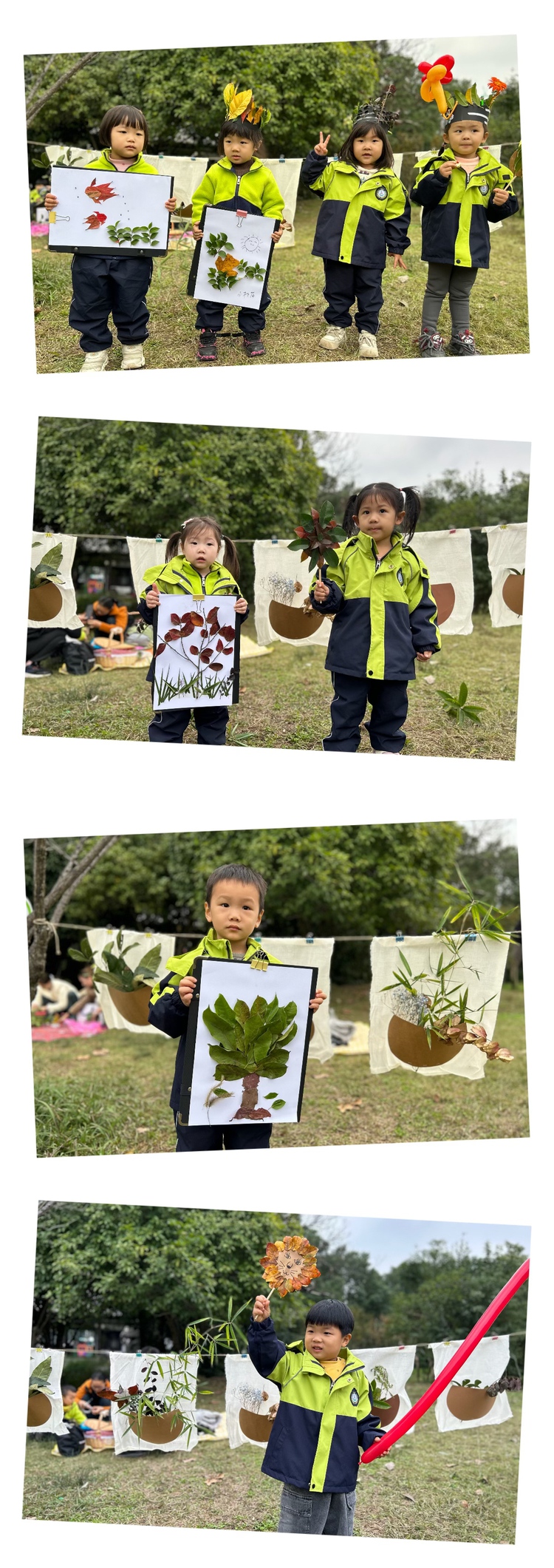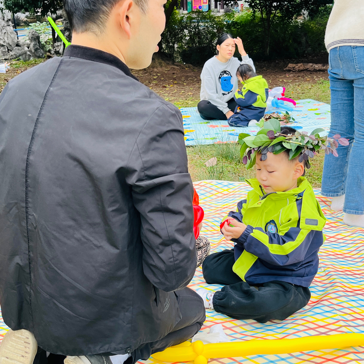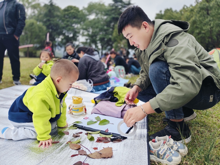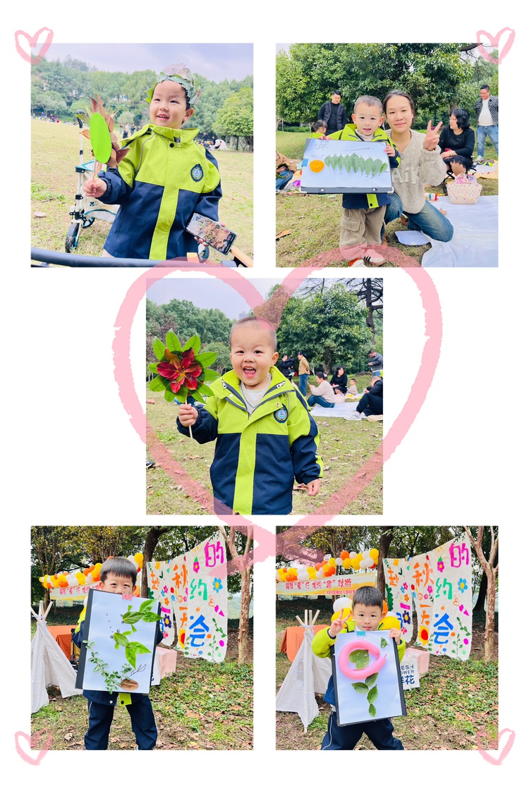本次活动以“赴一场秋天的约会”为主线,分为亲子趣味游戏和树叶创意手工两部分。