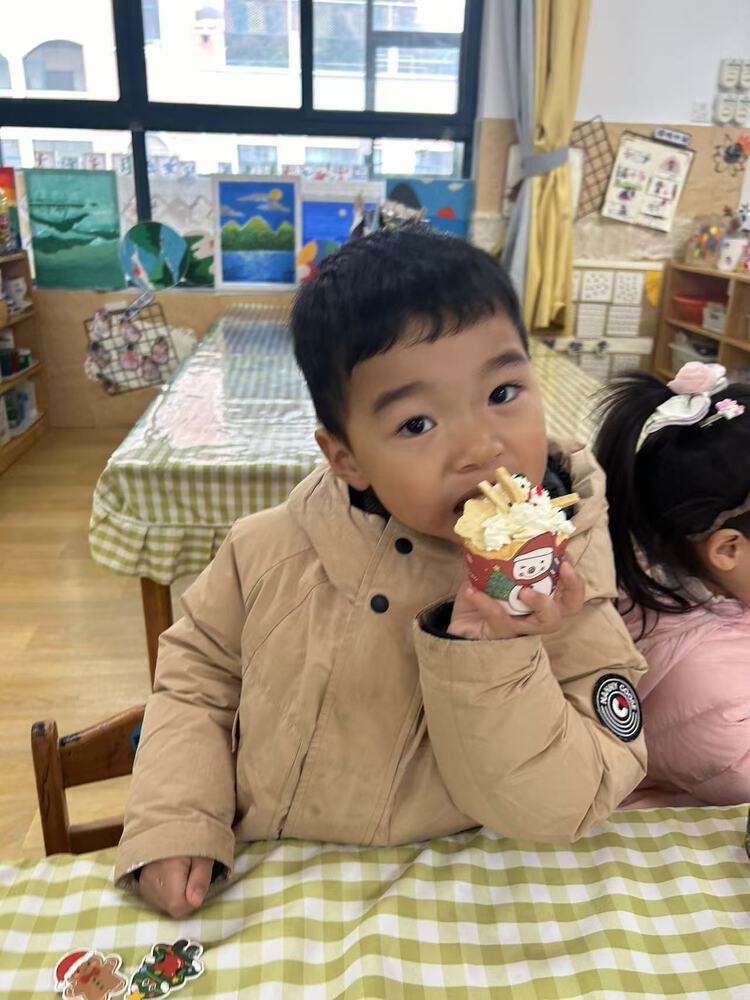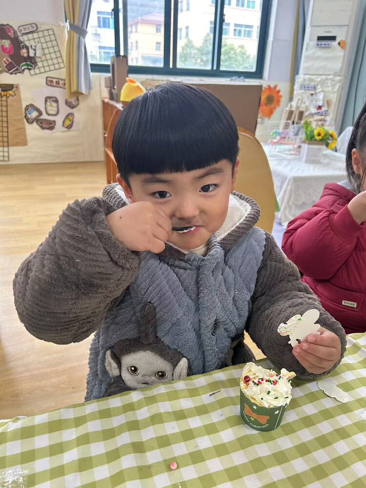 小朋友们品尝着自己制作的蛋糕,看着他们脸上的笑容,是藏不住的开心呀!