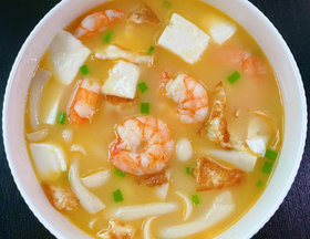 红烧翅根,鲜虾菌菇豆腐汤,胡萝卜炒娃娃菜,红枣饭