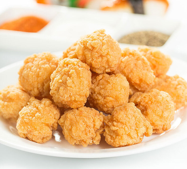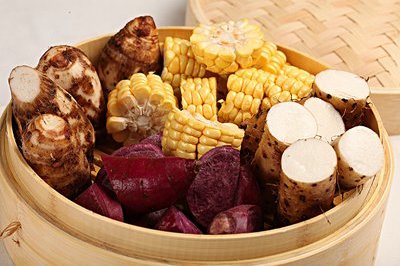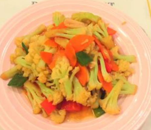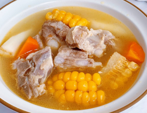 玉米莲藕排骨汤,清炒花菜,炸丸子,芝麻饭