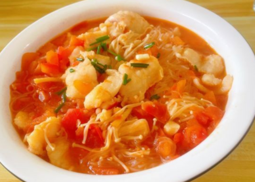 番茄巴沙鱼,香干肉丝白菜,芙蓉汤,白米饭