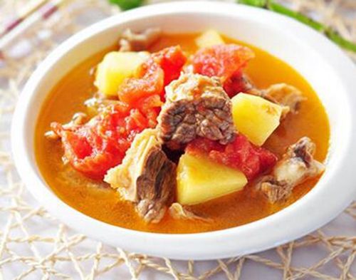 萝卜炖牛腩,烩什锦丝,菠菜粉丝汤,黑米饭