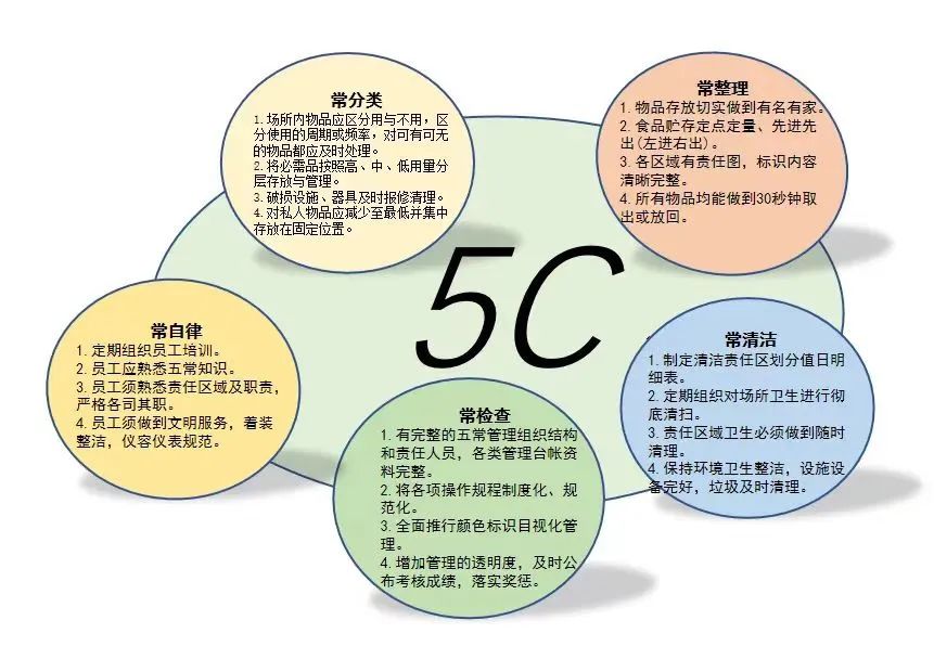 推动“五常法”,通过检查和激励,鼓励食堂人员养成良好的操作习惯,人人都是检查员,清洁员,安全员。这样才能让食堂的面貌焕然一新,提升食品安全和工作效率。