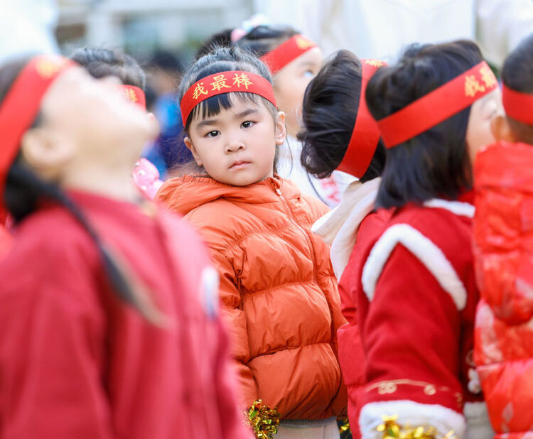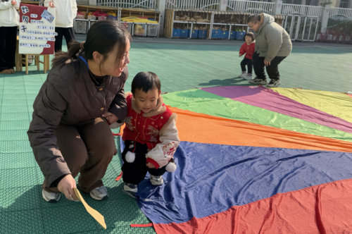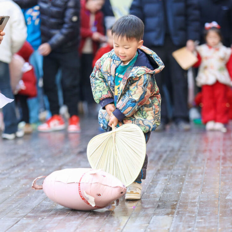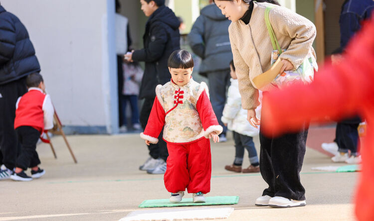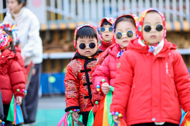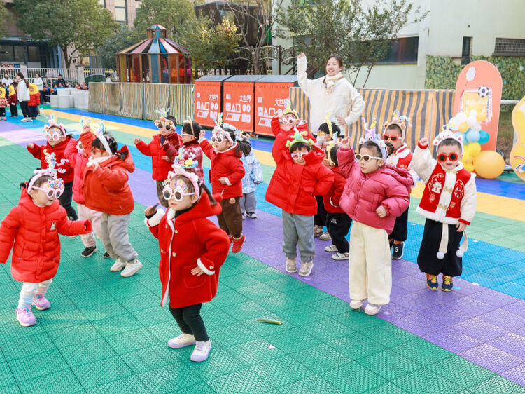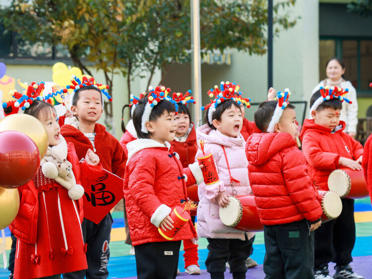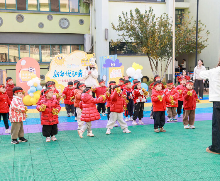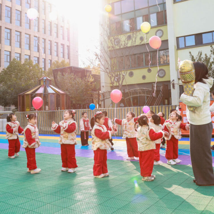 憨态可掬的小四班年娃娃来啦,他们身穿着喜庆的新年唐装,看起来太可爱了!放飞的气球就像孩子们快乐、自由的样子,尽情游戏吧!