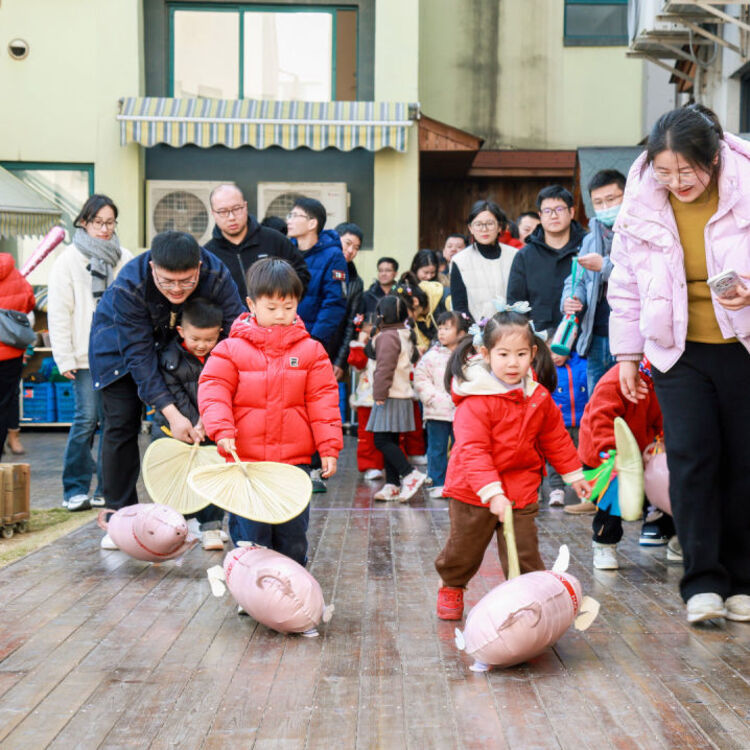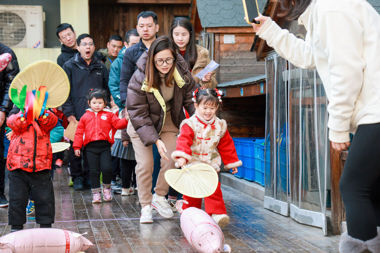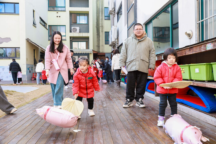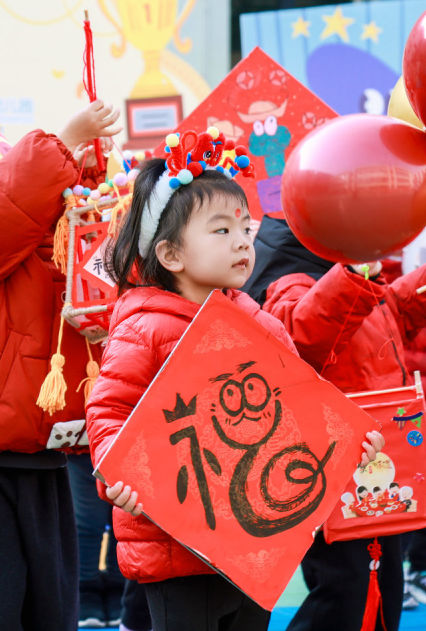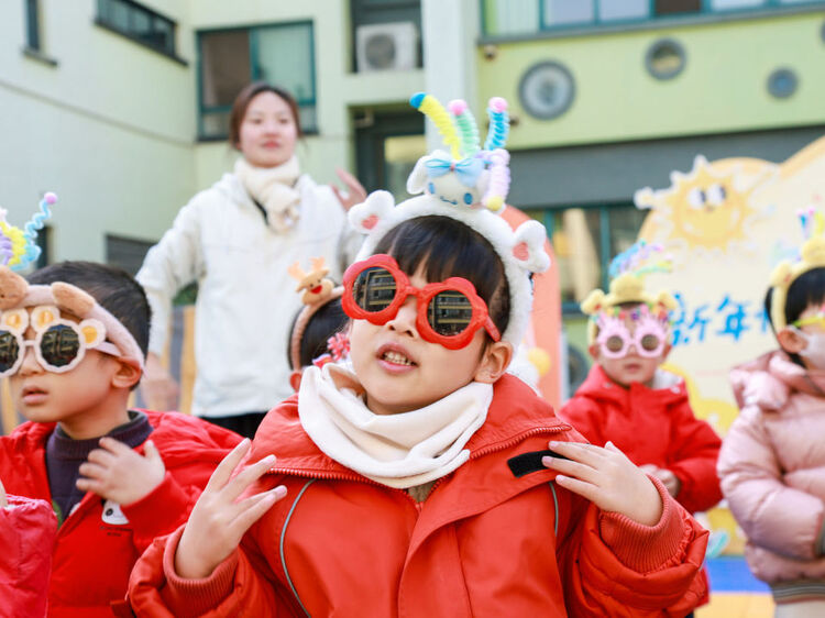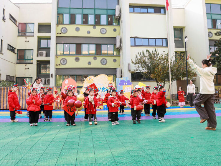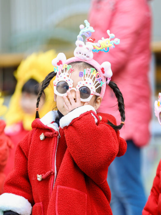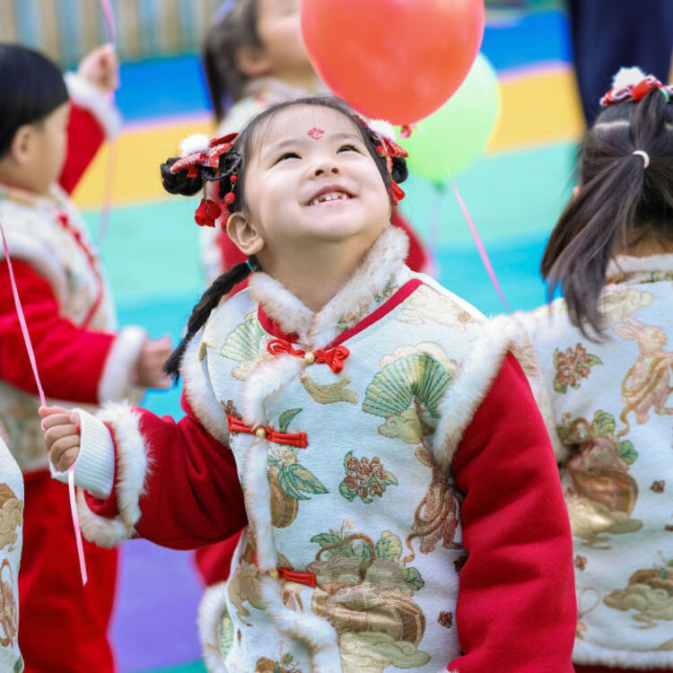 憨态可掬的小四班年娃娃来啦,他们身穿着喜庆的新年唐装,看起来太可爱了!放飞的气球就像孩子们快乐、自由的样子,尽情游戏吧!