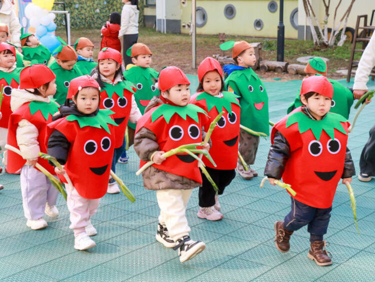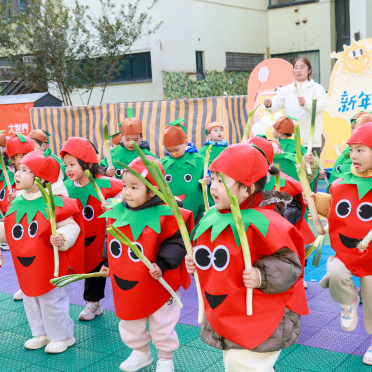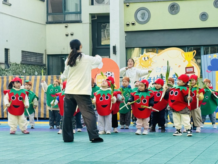 小五班的小朋友们变身成可爱的蔬菜,搭配上大葱舞蹈,饶有一番田园风味呢!