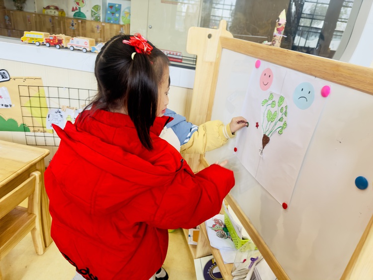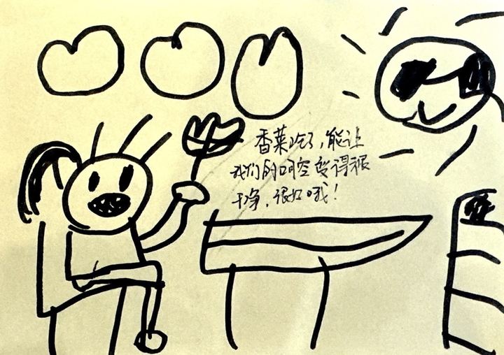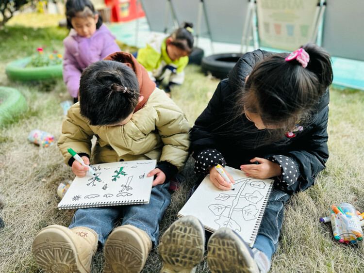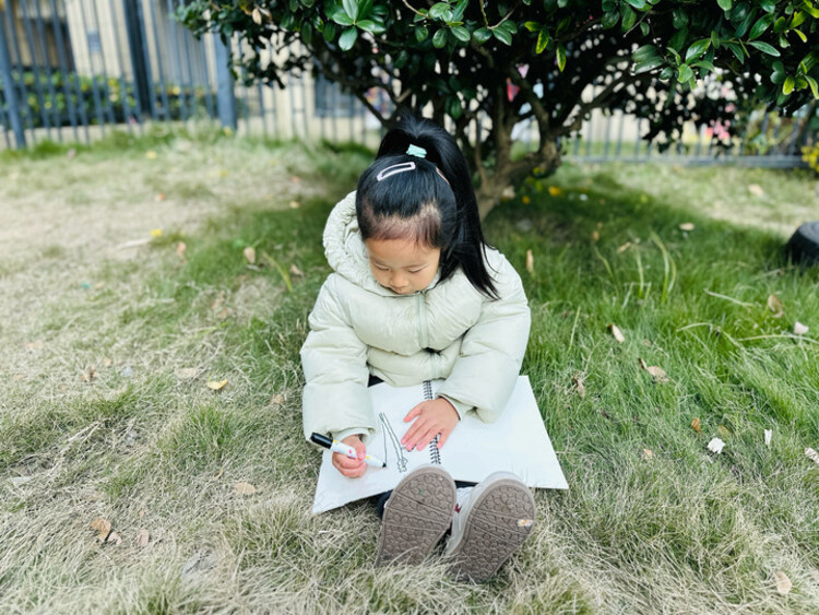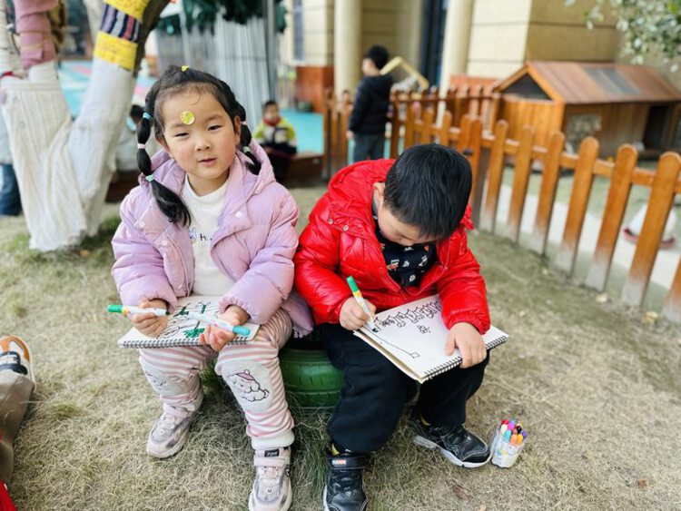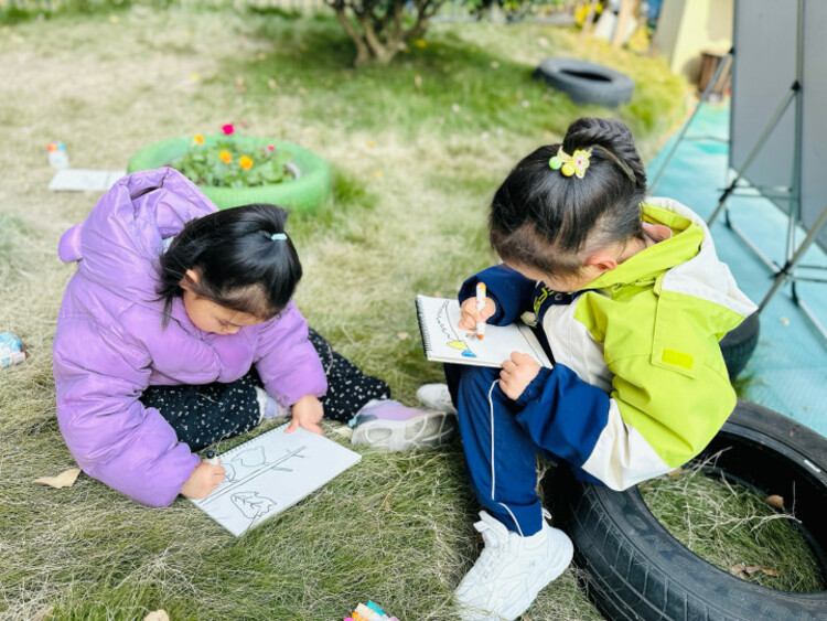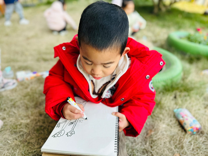 在品尝完香菜之后,孩子们拿来自己的写生本一起来画一画香菜。