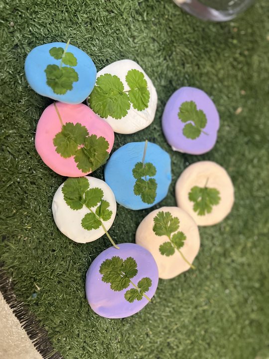 我们可以用上次拓印桃花的方法,把香菜拓印下来。