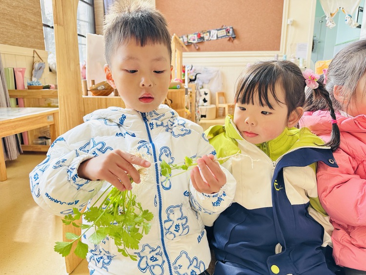 于是,孩子们将这两种长得很像的菜带回了教室。